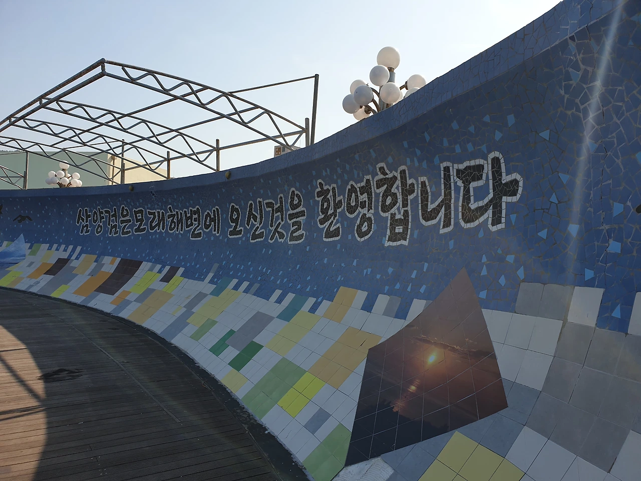 삼양검은모래해변의 정자에는 올레길 18코스의 중간 스탬프가 있다.