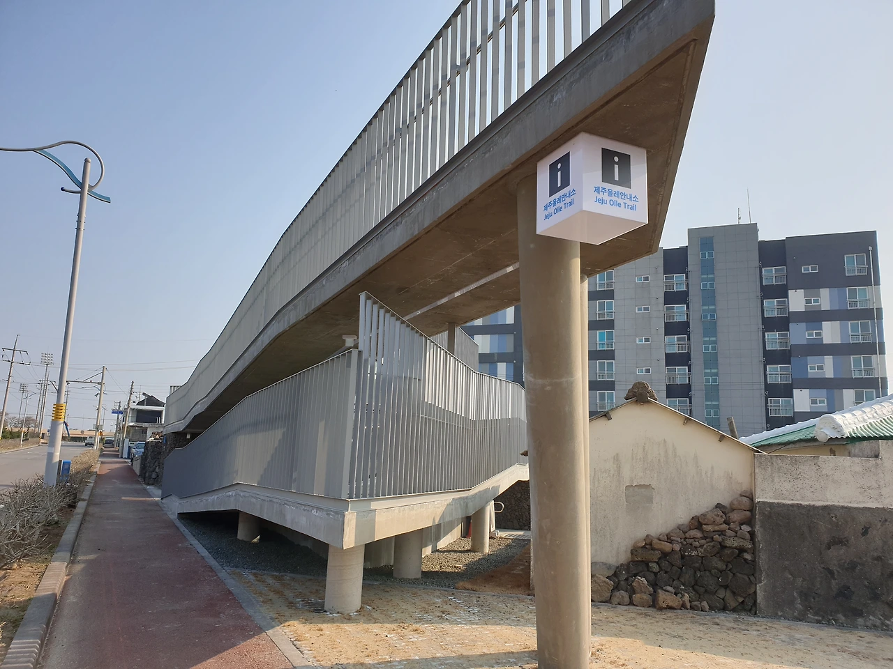 이제 도착점이 보이기 시작한다. 조천 만세동산 옆에 올레 안내소가 보인다. 그 앞에 18코스의 도착점이자 19코스의 시작점인 간세가 보인다.