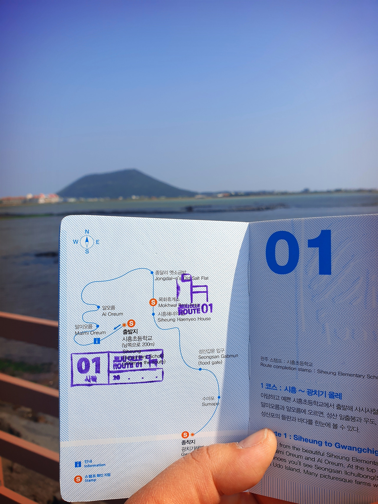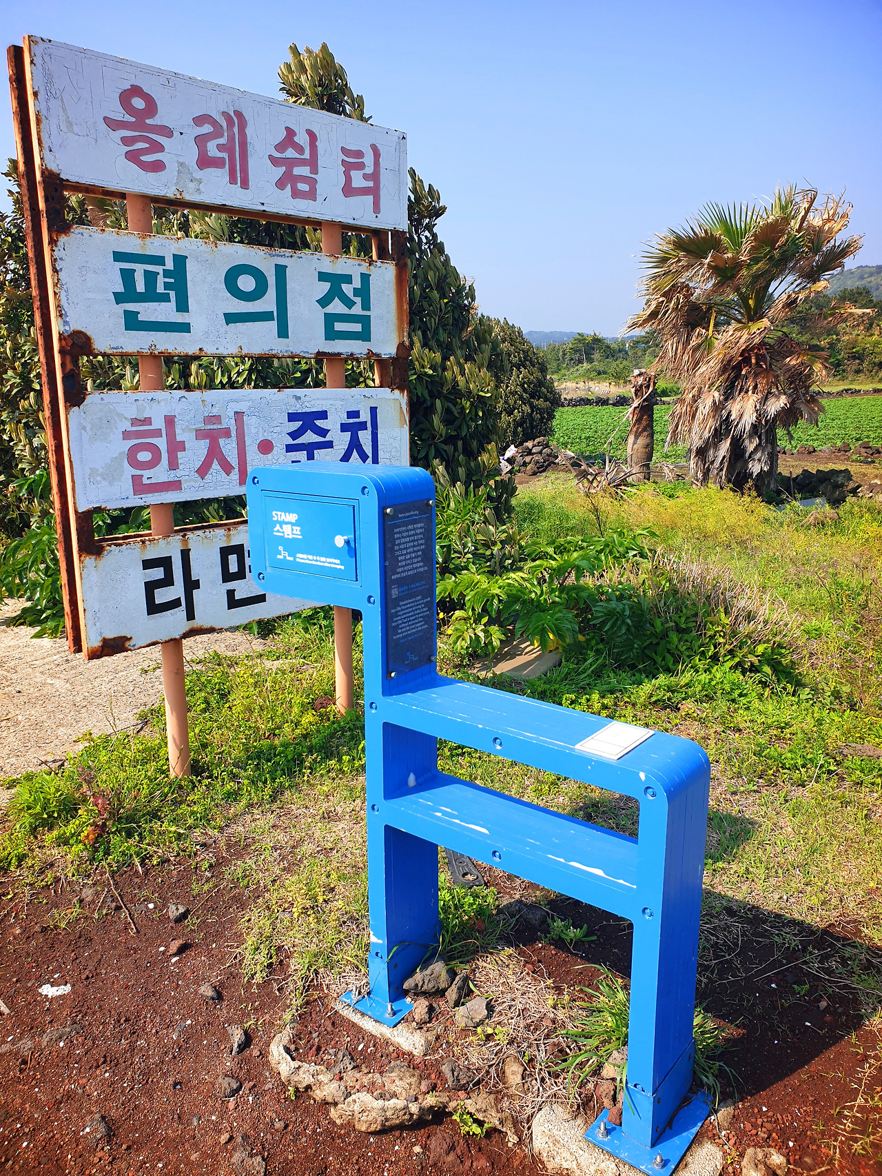 드디어 발견한 올레길 1코스 시작점 간세. 올레길을 걸으면서 올레패스라고 하는 수첩에 인증 도장을 찍는다. 출발점, 중간지점, 도착점에서 도장을 찍는데 그 재미가 쏠쏠하다.
