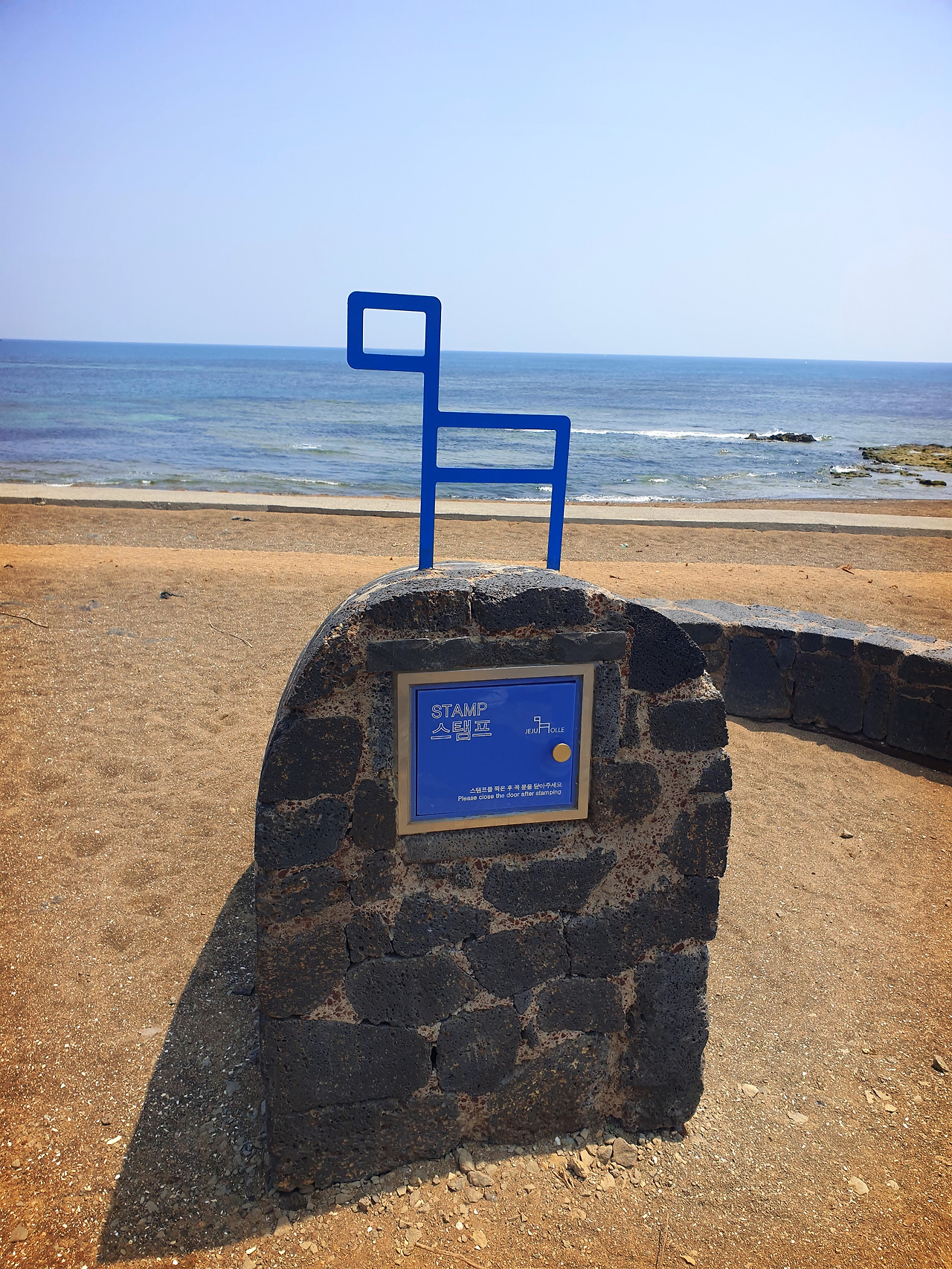 오징어를 말리고 있는 해변을 따라 계속 걷다 보면 목화휴게소 근처에서 중간 스탬프를 만날 수 있다. 코스마다 다르기는 하지만 중간 스탬프가 나왔으니 반 정도 지나지 않았을까?