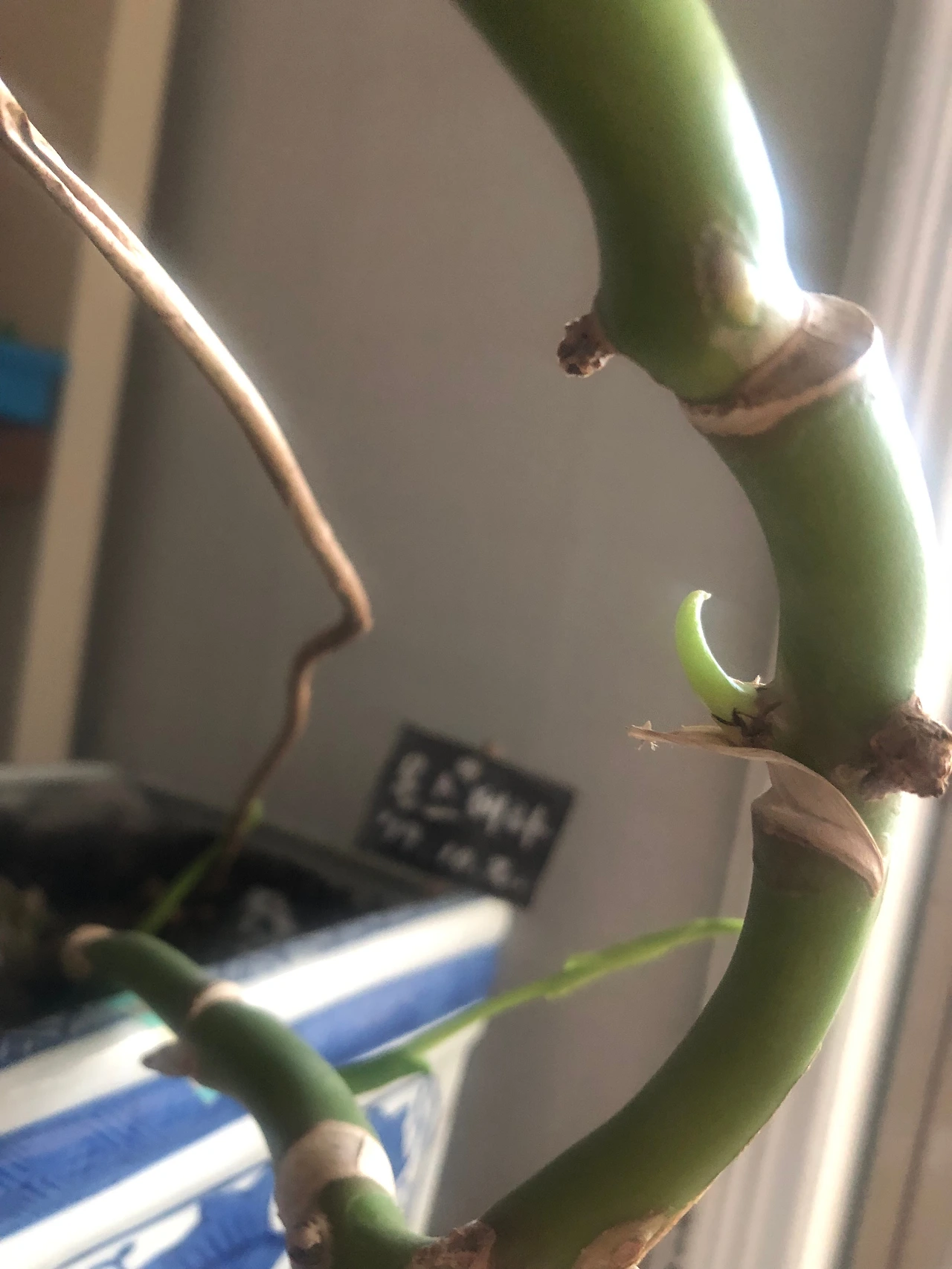 마디 중간에서 뿌리가 나오는 걸 봤던 터라 또 뿌리가 나오려는 건가 싶었다. 뿌리일까 싹일까?