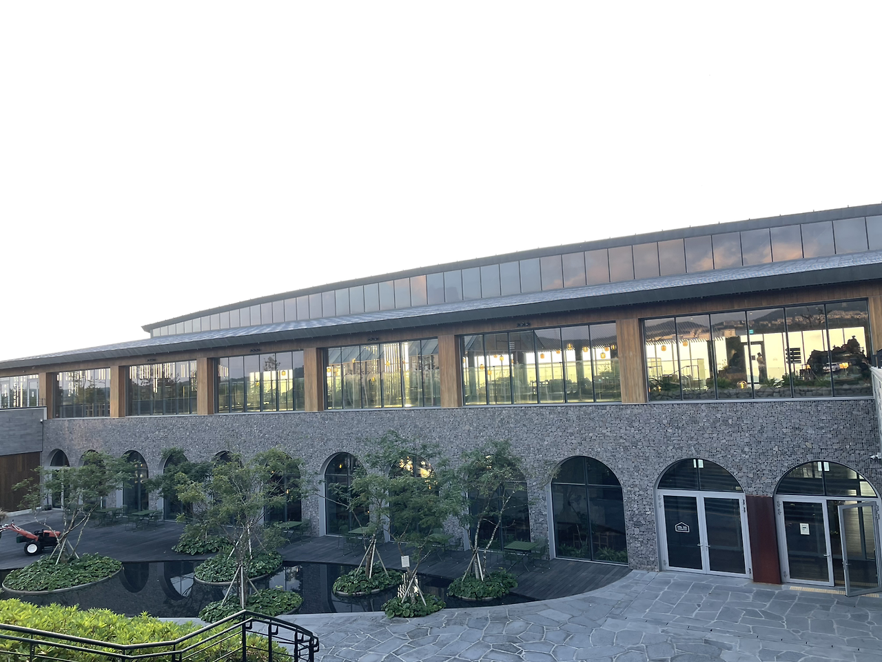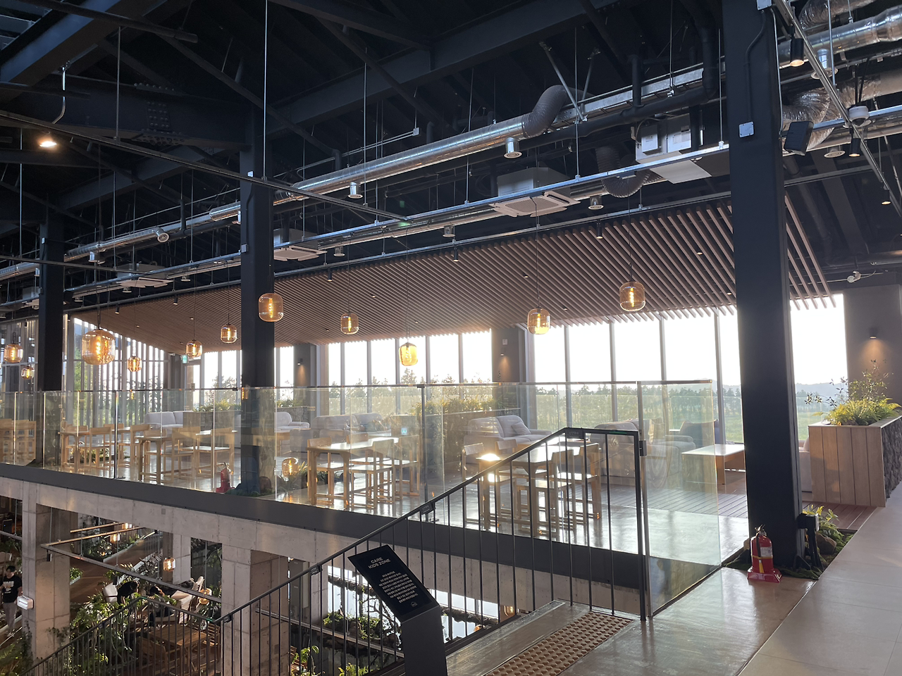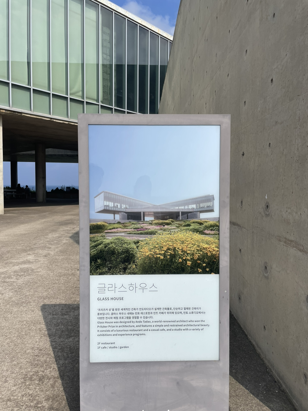 휘닉스파크 쪽에서 셔틀을 타거나 걸어야만 볼 수 있는 글라스 하우스. 건물 끝에는 바다가 광활하게 보인다.