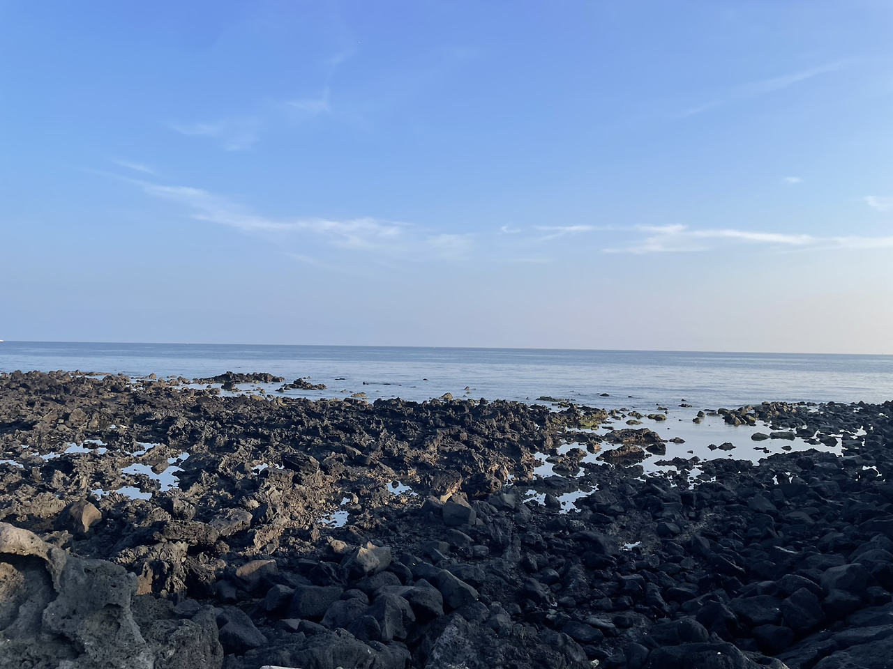 스노클링을 새로 사왔는데 눈이랑 입에 자꾸 물이 들어왔고 차가운 바닷속은 발이 닿이지 않아 바위 위에서 겨우 숨을 고르며 열대어들을 보았다.