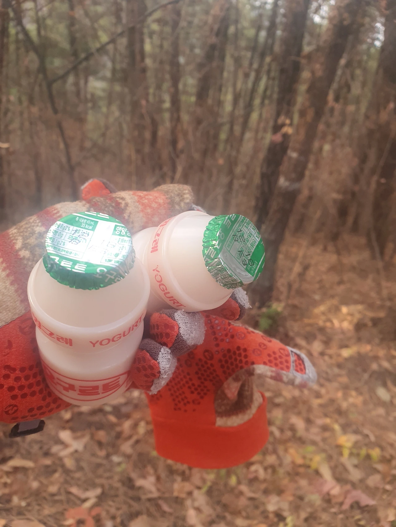이번 주에는 또 다른 산을 산행했다. 남편과, 동생 셋이서 재밌는 얘기도 하고 맑은 공기 쐬면서 즐거운 시간을 보내고 내려오는 길. 우리와 마주 보고 걸어오던 남자 한 분이 봉투에 수북이 담긴 요구르트 중 몇 개를 꺼내어 주셨다. 주시면서 산길에 쓰레기를 버리지 말고, 쓰레기가 있으면 주워 달라고 했다. 책임감, 요구르트를 받는 대가로 쓰레기를 주으라는 말이죠 하며 기쁘게 받았다.