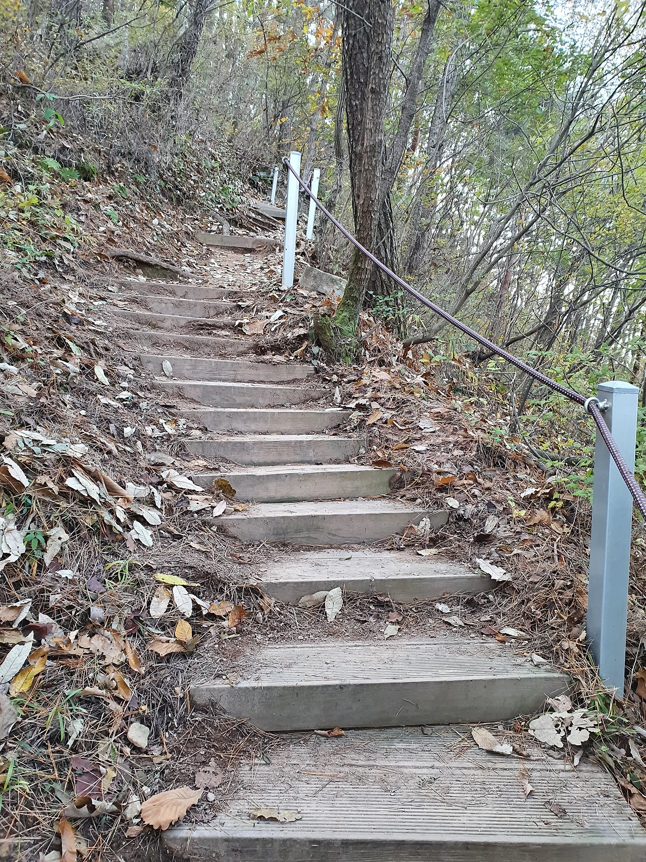 잠깐 휴식을 취하는 중에 옆 사람들의 이야기를 우연히 들었다. 등산객들의 안전을 위해서 등산로에 쌓인 낙엽을 치우는 분이 계시다고. 마침. 하산길 막바지에 그 분과 마주쳤다. 어르신 한 분이 산을 올라가면서 스틱으로 등산로의 낙엽을 일일이 풀숲으로 밀어내고 있었다. 그냥 오르기도 힘들 텐데 대단하다 싶었다. 배려심이 많은 그분에게 감사함을 느꼈다.