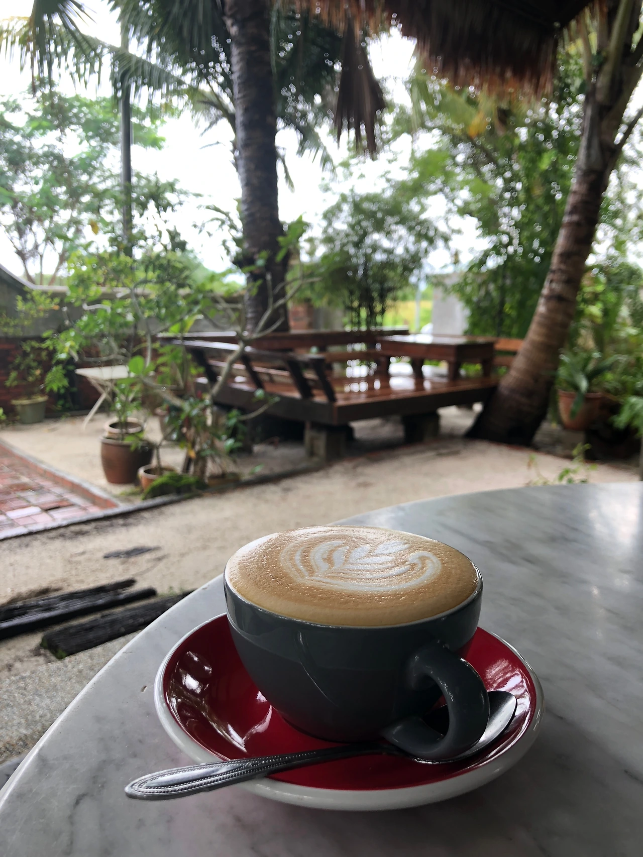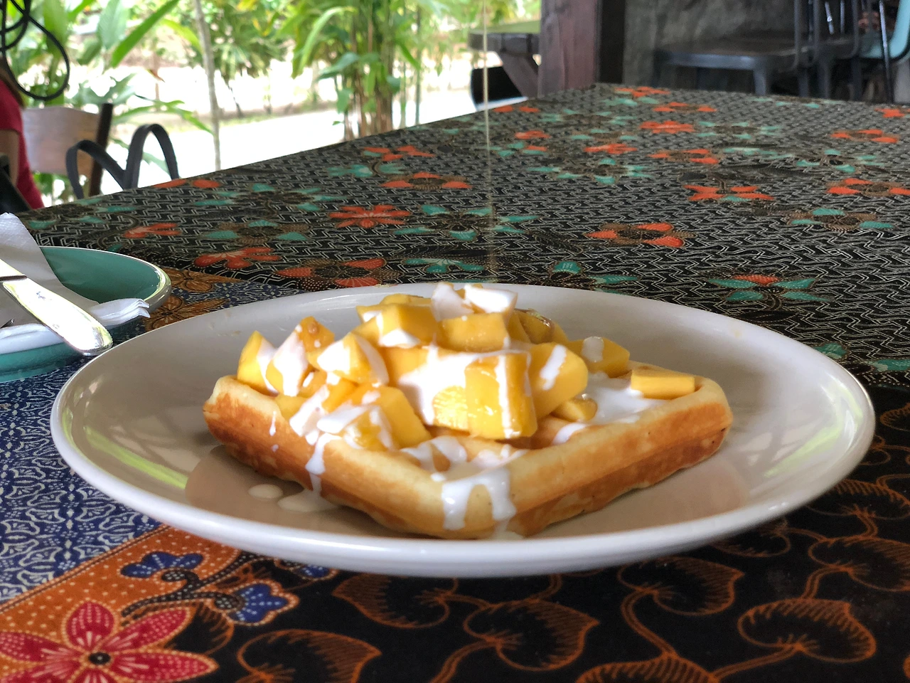 이국적인 분위기, 올드카, 예쁜 고양이, 주말마다 펼쳐지는 공연, 초록 초록한 분위기, 멋진 숙소와 함께 하는 리조트 분위기가 물씬 나는 곳. 아이들과 가도 좋은 곳. 망고 와플이 굉장히 유명하며, 맑은 햇살을 즐기는 귀염성 많은 고양이들도 볼 수 있다. 브랙퍼스트 메뉴가 푸짐하고 맛있으며, 커피가 굉장히 훌륭하다. 개인적으로 랑카위에 들르면 반드시 가는 맛집. 무엇을 시켜도 실패하지 않는다.