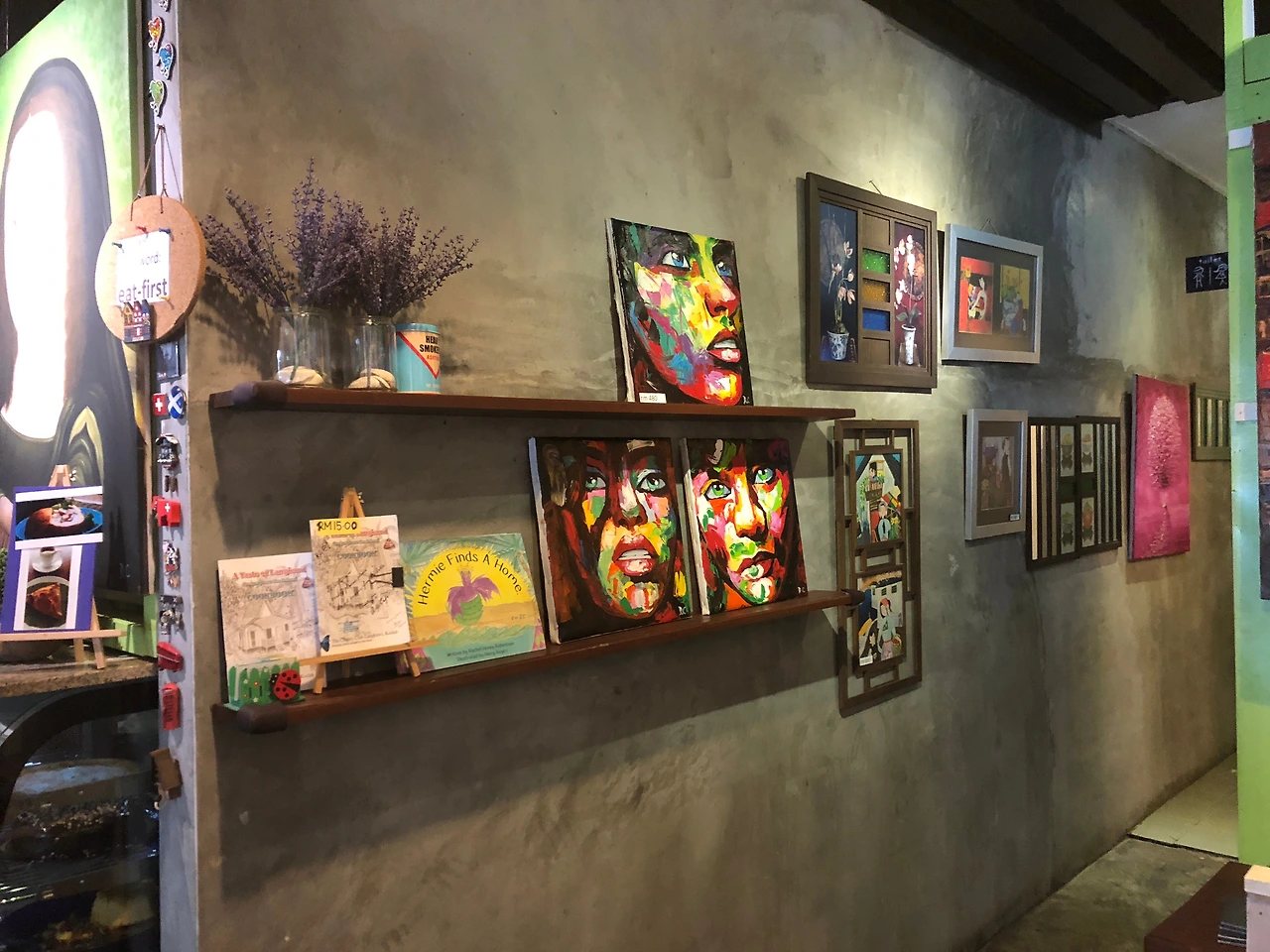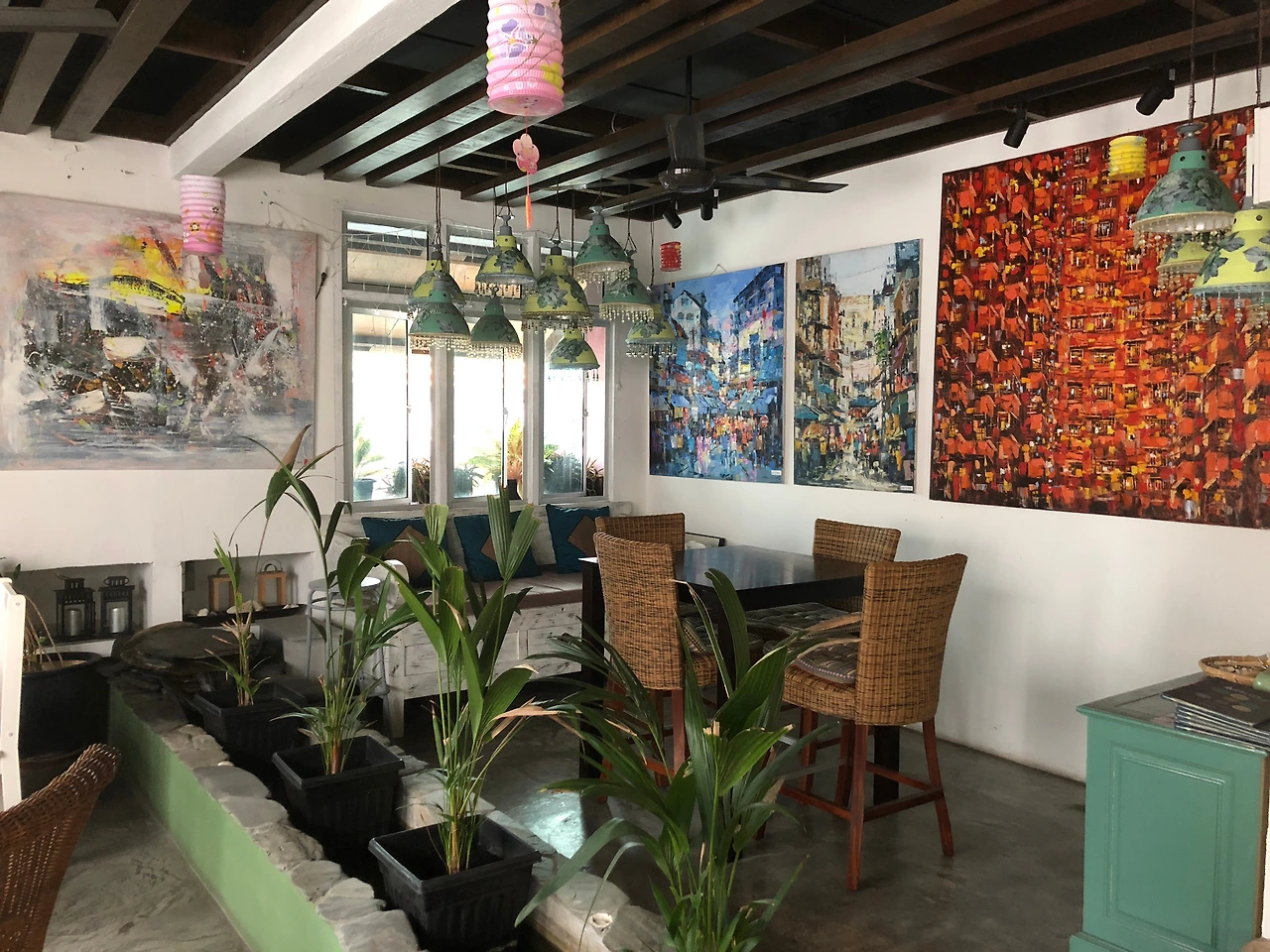 1층, 2층으로 꾸며진 공간. 갤러리 스타일로 그림이 전시되어 있다. 가격이 저렴한 편은 아니지만, 랑카위에서 지내는 동안, 매번 글을 쓰러 들렀던 곳-다른 곳들은 오래 앉아 있기 힘들고, 와이파이가 느렸다는 것은 안 비밀-. 너른 공간을 원하는 사람에겐 1층은 조금 답답한 느낌일 수 있지만, 2층은 넓고 한적한 스타일이다. 이런 곳에, 이런 카페가 있다고?라는 느낌도 들 수 있는 조금 외진 곳이지만, 들러보면 왜 가볼 만 한지 알 수 있다. 사진 찍기도 좋고, 근처에 크고 작은 듀티 프리 상점들도 있어서, 커피 한잔 하러 가기에 꽤 괜찮다. 외국인 관광객이 많다.