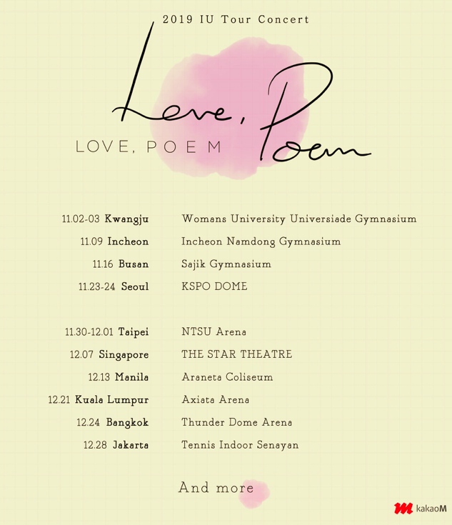 넷째, 나는 아이유가 성장하는 아티스트인 게 너무 좋다. 좋은 날, 너랑 나, 스물셋, 팔레트, 삐삐, 블루밍, 그리고 이번 앨범 [LOVE, POEM] 속의 모든 노래들을 부르는 아이유를 직접 본 감동은 이루 말할 수 없다. 위로와 공감, 그 자체다. [팔레트]에서는 '좋은 날 부를 땐 참 예뻤더라'라는 위트도 잊지 않았다. 그렇게 그녀의 이야기는 끝나지 않는 '서사'다. 위로다. 본인이 성장해 나가며 고민한 흔적이 꾹꾹 눌러 담겨 있다. 이번 앨범의 [자장가], [시간의 바깥], [LOVE, POEM]이 크나큰 위로를 전해주는 이유가 그것이다. 성장과 고민, 치열함과 혼란 속에서 정제한 자기만의 생각이 담긴 노래들이 너무나 좋다. 그래서 아이유의 노래가 발표되면 나는 항상 전곡을 다 들어본다. 그래서 싱글 앨범일 때가 가장 아쉽다. 아이유는 힘들겠지만 조금 무거운 앨범이 발매되면 그렇게 좋을 수가 없다. 예닐곱 곡, 아홉 열곡도 좋다. 그냥 세상에 '제대로 들을만한 노래'가 많아졌다는 게 반가운 일이다.