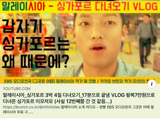 마이크도 없이, 오디오도, 비디오도 어떻게 할 줄 모르고, 남들 다 하는 자막이니, 편집이니 아무것도 모르고 그냥 무작정 찍었다. 그것도 2019년 4월에. 말레이시아 정보를 최대한 구체적으로 전달해 보겠다는 의지 하나로 무려 50분짜리를 만들었다. 그 당시 나는 영상을 만들면, 그 내용이 괜찮으면 그냥 다 끝까지 봐주는 줄 알았던 '순진남'이었으니까. 하다못해 친구나 가족들이라도 봐주겠지 라고 은근 마음을 놓고 있기도 했다.