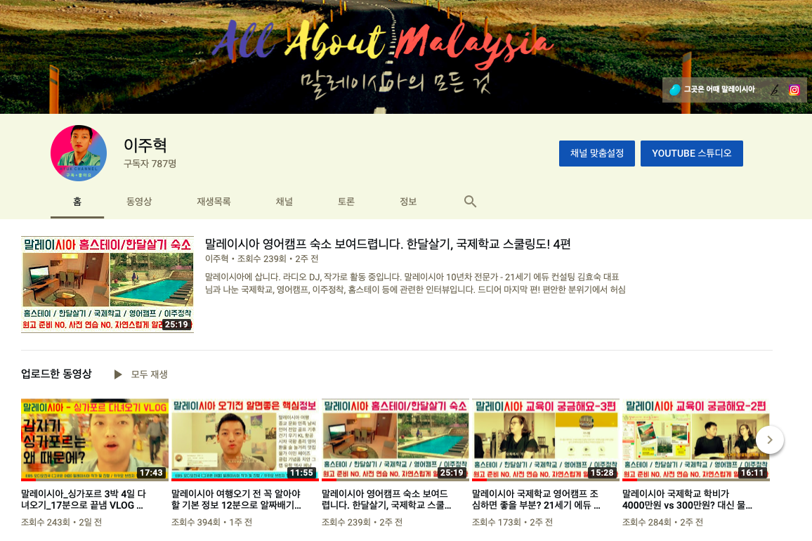 구독자 787명의, 화제의 말레이시아 유튜브