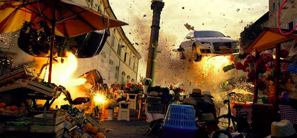 영화를 처음 틀자마자 '아, 뭐 이건 뮤비인 줄'이란 생각이 절로 든다. 편집도 매우 감각적이거니와, 음악과 어우러지는 근사한 배경, 규모와 수를 짐작할 수 없을 만한 해외 로케, 속도감 터지는 차량 추격씬, 맨몸 격투씬, 결투 장면, 하다 못해 자막에서까지 보여주는 위트까지, 블록버스터의 끝판왕을 갈고 닦아서 고심 끝에 펼쳐 보이면 이 정도는 되겠구나, 하는 느낌이다.
