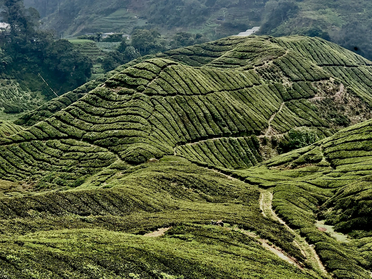 이런 카메론 하일랜드는 영국 정부의 조사원이었던 윌리엄 카메론이 발견했기 때문에 이렇게 이름이 붙었는데, 지형을 파악하기 위해 지도를 제작하던 중에 이 고산 지대를 발견했다고 한다. 벌써 거의 100년 전의 일인데, 카메론 하일랜드에 가면 타나 라타 (Tanah Rata)나 북쪽 캄풍 라자(Kampung Raja) 또 남쪽 링렛(Ringlet) 대규모 농업 지역인 키 팜(Kea Farm), 야시장 유명한 브린창(Brinchang) 지역들을 한 번에 볼 수 있어, 그 다채로움에 놀라게 된다. 그중에서도, 끝없이 펼쳐져 있는 구불구불한 능선의 녹차밭이 참 인상 깊게 다가온다. 끝없이 넘실대는 초록 바다가 눈앞에 펼쳐지는 느낌이다.