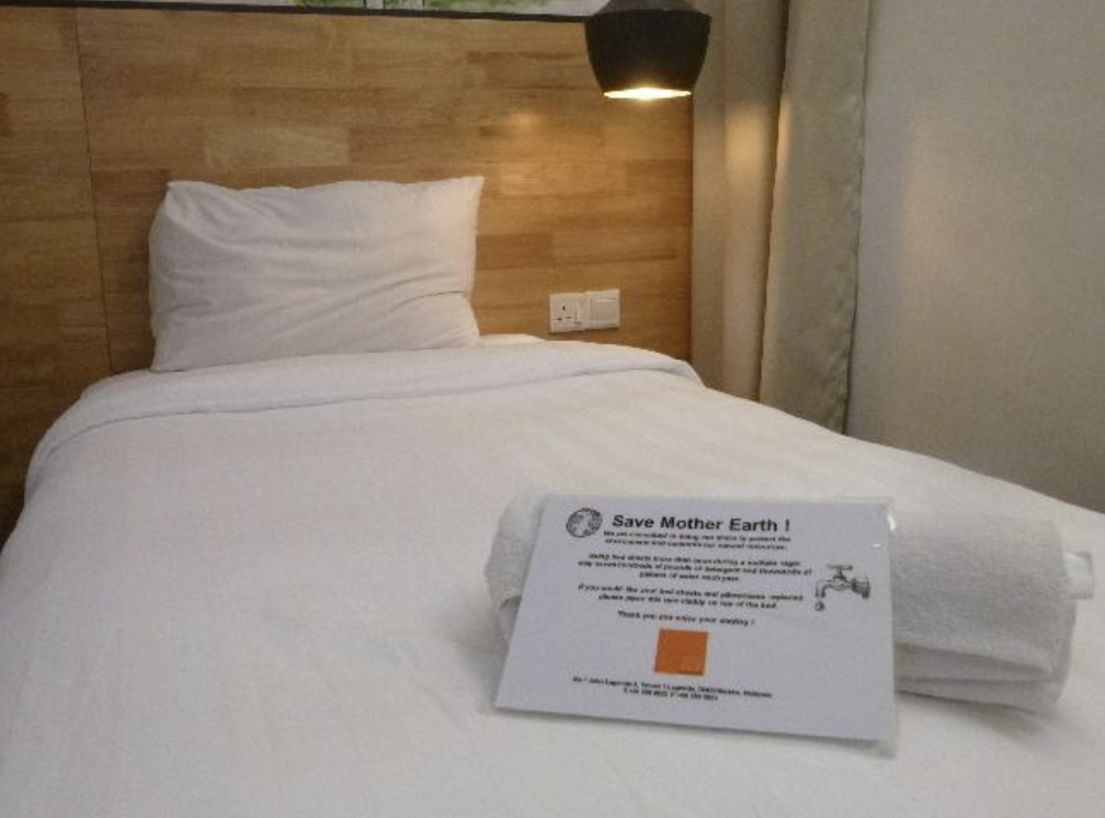 다음으로, 요즘 전 세계 어느 나라의 호텔이나 보통 붙어 있는 "소중한 지구를 지켜주세요"라는 배너 때문.