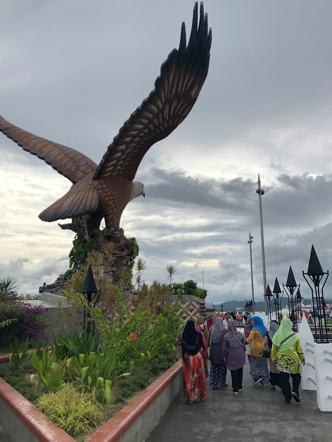 늘어지게 아침을 먹고 나서, 랑카위의 상징, 독수리상이 있다는 쿠아타운에 들러보기로 했다. 태국의 섬으로도 이동이 가능하고, 말레이시아의 또 다른 유명 휴양지인 페낭에도 갈수 있는 제티 포인트가 있는 곳이 바로 이 쿠아제티Kuah Jetty다. 그 제티 끝자락에, 바다를 바라보며 우뚝 서 있는 금방이라도 날아갈것만 같은 독수리상이 세워져 있는데, 이게 바로 랑카위의 상징인 독수리를 형상화한 작품이다. 말레이시아의 현직 총리인 마하티르의 이름이 아래 현판에 새겨져 있는 독수리상은, 북한과의 수교를 기념하기 위해 북한에서 선물했다는 근거 없는 이야기가 어느 여행책자에 실려 있는데, 이는 사실이 아니다. 그러고 보면, 여행 책자도 언제나 믿을만한 건 못되는것 같다.