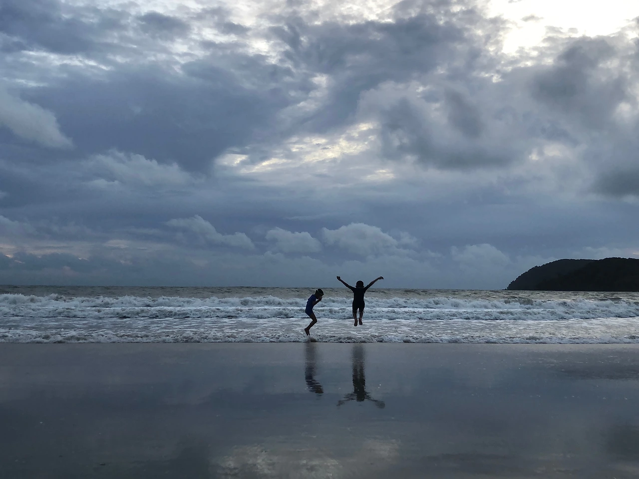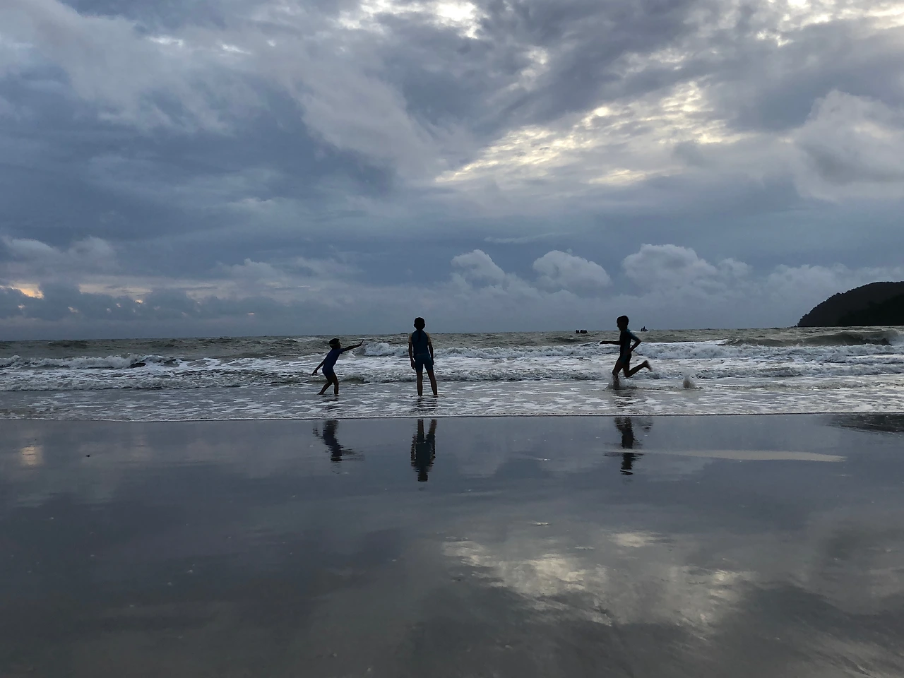 아니나 다를까, 30분도 되지 않아 비가 그쳤다. 구름이 잔뜩끼어 멋진 선셋을 기대하긴 힘들겠지만 그런대로 좋다. 나는 이 무렵의 바다를 사랑한다. 하루 종일 수많은 사람들의 발목을 감싸며 흩어지고, 끝없이 펼쳐진 모래를 뒤덮었다가 하얗게 부서지기를 반복하다가, 붉게 이글거리는 해를 삼킬때쯤 만들어내는 하늘과 바다의 '데칼코마니'가 그렇게 좋다. 한사람이 두사람이 되고, 두사람이 네사람이 되고, 네사람이 여덟사람이 되는 매끄러운 거울의 바다가 좋다.