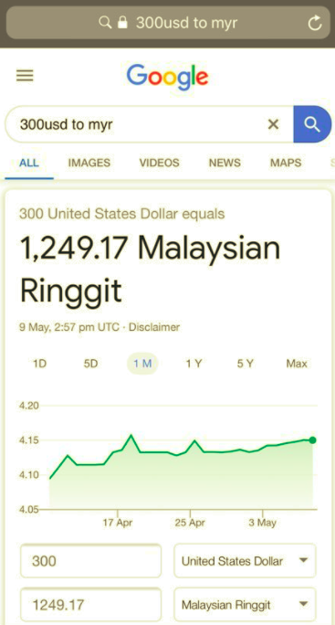 300 usd to myr 300달러(USD)가 링깃(MYR)으로 얼마인가