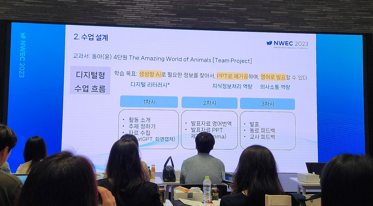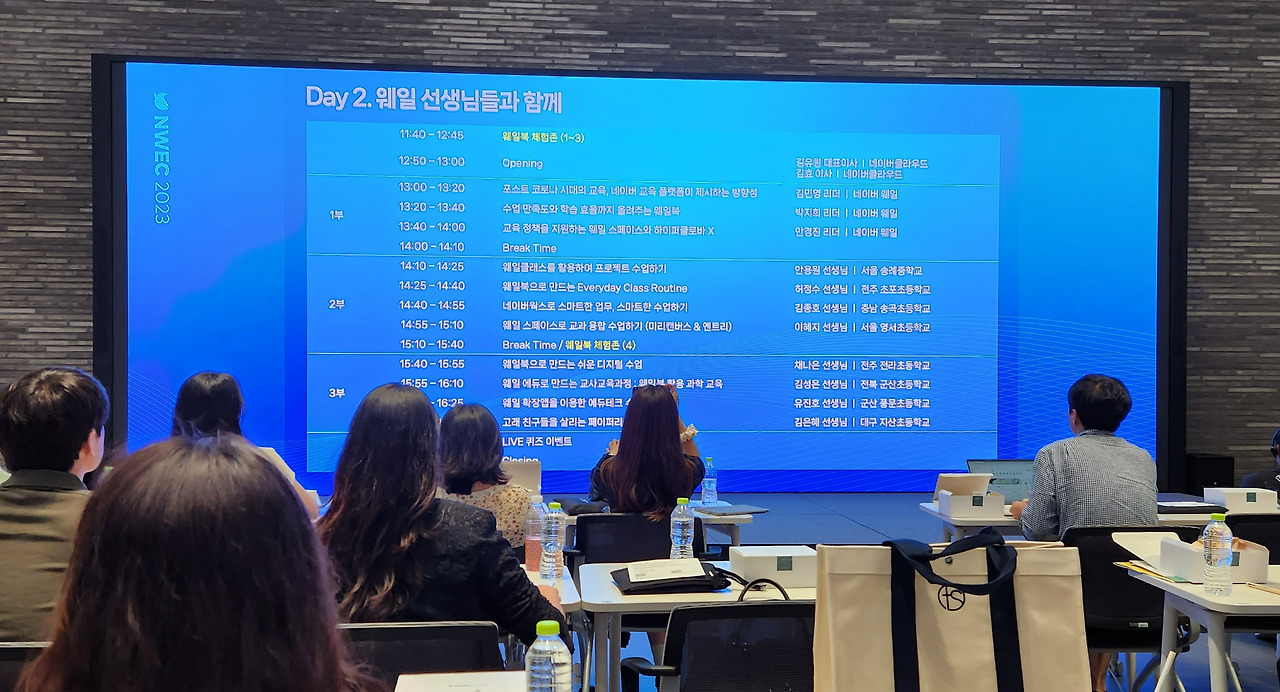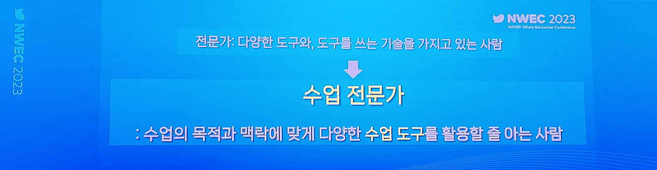 작년에 이어 두 번째 네이버 웨일 교육 컨퍼런스(NAVER Whale Education Conference: NWEC 2023)가 '에듀테크와 웨일이 만드는 미래 교육 환경'을 주제로 8.10.(목)~11(금) 개최되었다. 1일 차에는 에듀테크 파트너(제휴사)를 대상으로 진행되었고, 나는 2일 차에 참여하여 웨일 서비스를 도입한 수업 사례를 듣고, 새롭게 출시 예정인 웨일 기기를 체험해 보았다.