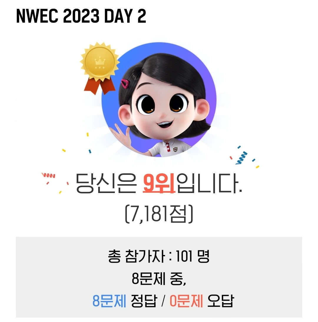 참여자를 대상으로 한 퀴즈에서 9등을 했다. 다들 손이 정말 빠르다. :)