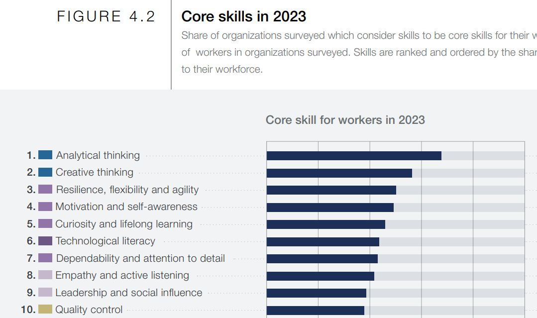 2023년 근로자에게 필요한 핵심 기술(core skill) 순위(출처: The Future of Jobs Report 2023. 2023-2027년에 대한 45개국 803개 기업의 전망을 조사함.)