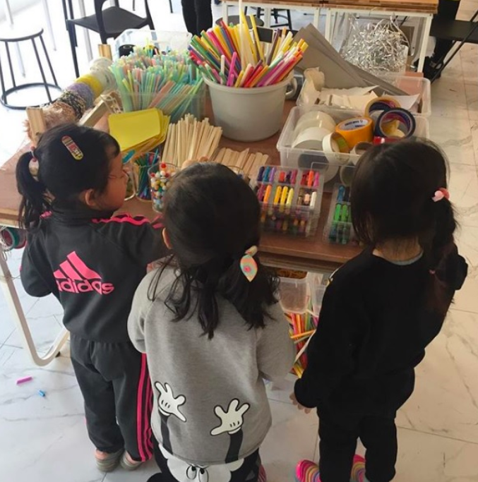 제약 없이 일종의 약속을 만들 수 있었던 건, 아주 세심한 기획이 선행됐기 때문입니다. 이 공간에 들어온 아이들은 제일 먼저 작업실에 들어온 시간과 이름을 기록합니다. 각자의 작업을 구상한 뒤, 필요한 재료를 재료 바에서 고릅니다. 그리고 적당한 테이블로 이동해 작업을 시작합니다. 작업을 마친 뒤에는 작업 노트를 써야 합니다. 글을 쓸 수 없으면 그림으로 그립니다. 이런 일련의 과정은 공간을 설계하고 구성할 때, 여러 번의 시뮬레이션을 통해 유도해 낸 것입니다.