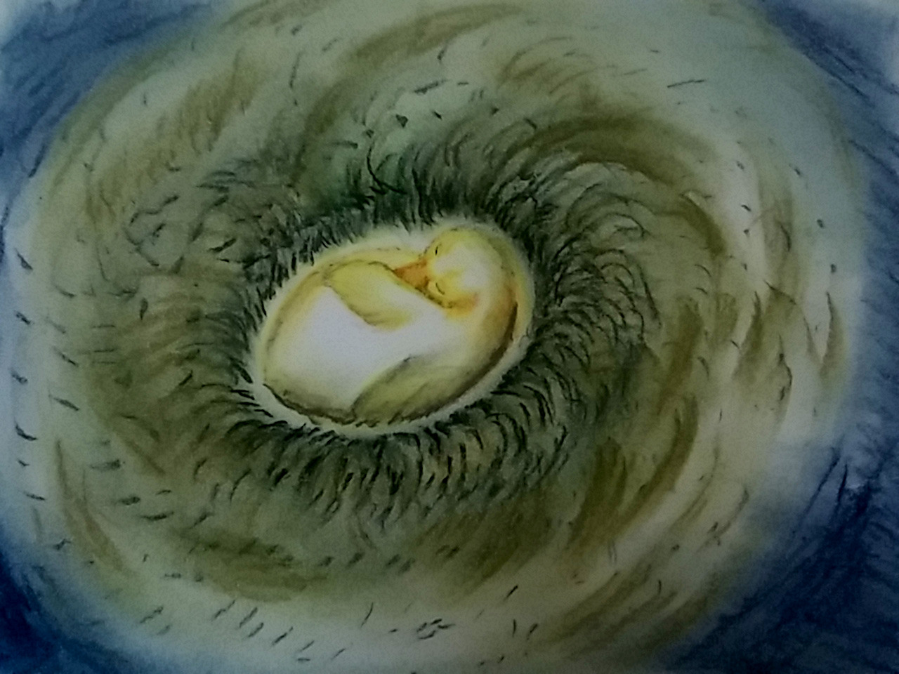 물결은 어린 백조 통디를 자꾸 떠밀어 내었다. 통디는 두 발을 움직여 강 위쪽으로 헤엄쳐 올라가려 했지만 힘들었다. 강 물결은 거셌고 통디는 한 줌 깃털처럼 작고 가벼웠다. 또한 물속에 너무 오래 있었기에 몸의 체온도 떨어졌고 날개와 다리에 힘도 빠졌다. 통디는 있는 힘을 다해 발로 물을 차며 되돌아가려 했지만 오히려 엄마 아빠가 있는 곳으로부터 더 멀어져 갔다. 황혼이 짙어져 가는 강물 위에서 통디는 혼자 물결에 떠내려갔다. 통디의 마음속에는 절망과 공포가 드리워졌다.