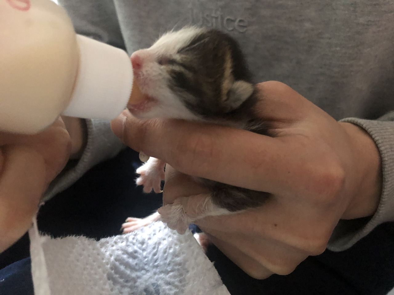 몸을 살짝 감싸 쥐고 목을 검지 손가락에 걸쳤다. 태어난 지 얼마 안 된 고양이들 중에는 젖병을 못 무는 아가들도 있다던데, 세이는 다행히도 금방 젖병에 적응했다. 꼴깍꼴깍 한 모금씩 삼킬 때마다 목에서 배로 분유 흘러가는 게 손가락과 손바닥에 느껴졌다. 엉거주춤한 자세로 내 자세가 제대로 된 건지 계속 의심했다.