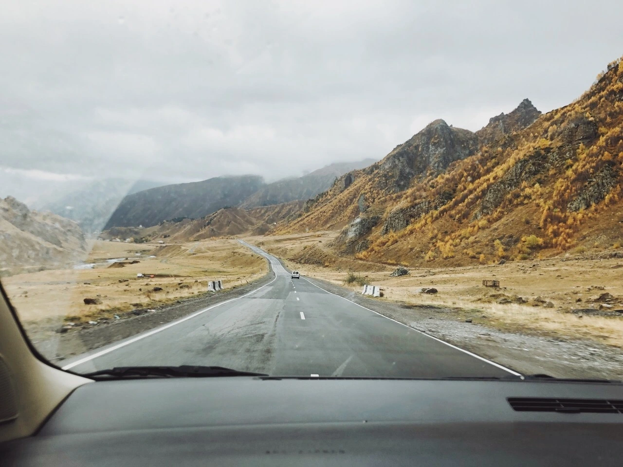 특히 이, 구다우리의 산악길에서 평지로 내려와 쭉 뻗는 산길은 매우 아름다우면서도 '군사 도로'라는 이름에 걸맞은 위압감을 지니고 있다. 잿빛 산에 둘러싸인 풍경은 험준하고 쌀쌀맞고, 도로는 획일적이라 이 길로 진군하는 군대를 상상하기는 어렵지 않다. 심지어 나는 길 너머 평원 안쪽 멀리에서 오래된 탱크로 추정되는 새까만 무언가를 언뜻 보기도 했다.