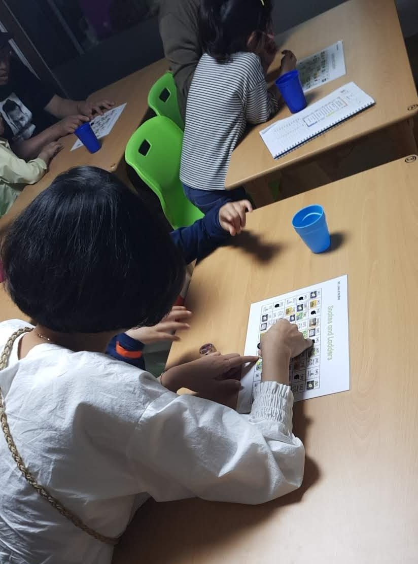 공개수업의 일정은 미리 한 달 전에 공지가 되었다. 아빠, 엄마, 할머니, 이모 등 가족 중 누구라도 참석을 하려고 애를 써 주셨다. 그만큼 어떻게 수업을 하고 있는지 궁금한 부분도 있으셨으리라 본다. 수업의 구성방식은 영어 말하기 활동을 가족과 팀이 되어 서로 영어로 이야기 나누도록 했다. 집에서 영어로 말하기는 정말 쉽지 않으니, 공부방 공개수업을 통해 아이들과 즐겁게 영어로 말하기를 하는 경험을 가족들에게도 주고 싶었다. 그리고 그 경험을 통해 영어에 관심이 생기면 더 좋은 일이고 아이들이 즐겁게 배우는 이 과정을 좀 더 불안 감 없이 지켜보며 응원해 주기를 진심으로 바랐던 것이다.