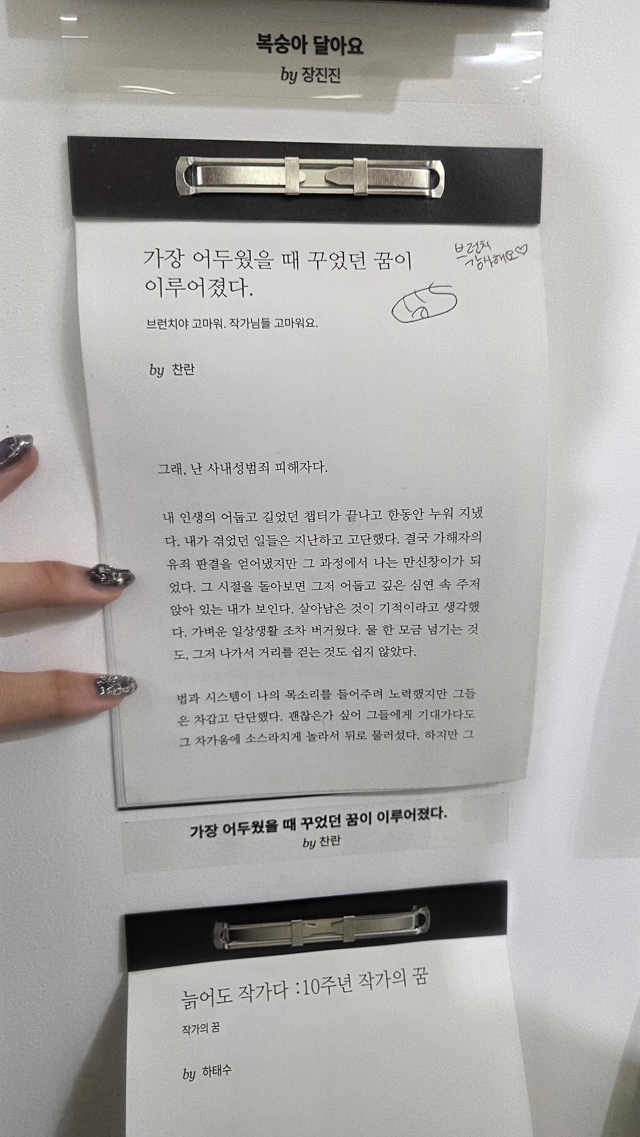 늘 좋은 글 감사하게 보고 있는 작가님분들 여기서 뵙니 더욱 반갑더라고요. 하나하나 시간 가는 줄 모르고 한참 읽었어요. 작가님들 덕분에 전시가 훨씬 더 의미 있고 풍부해진 듯하더라고요.^^