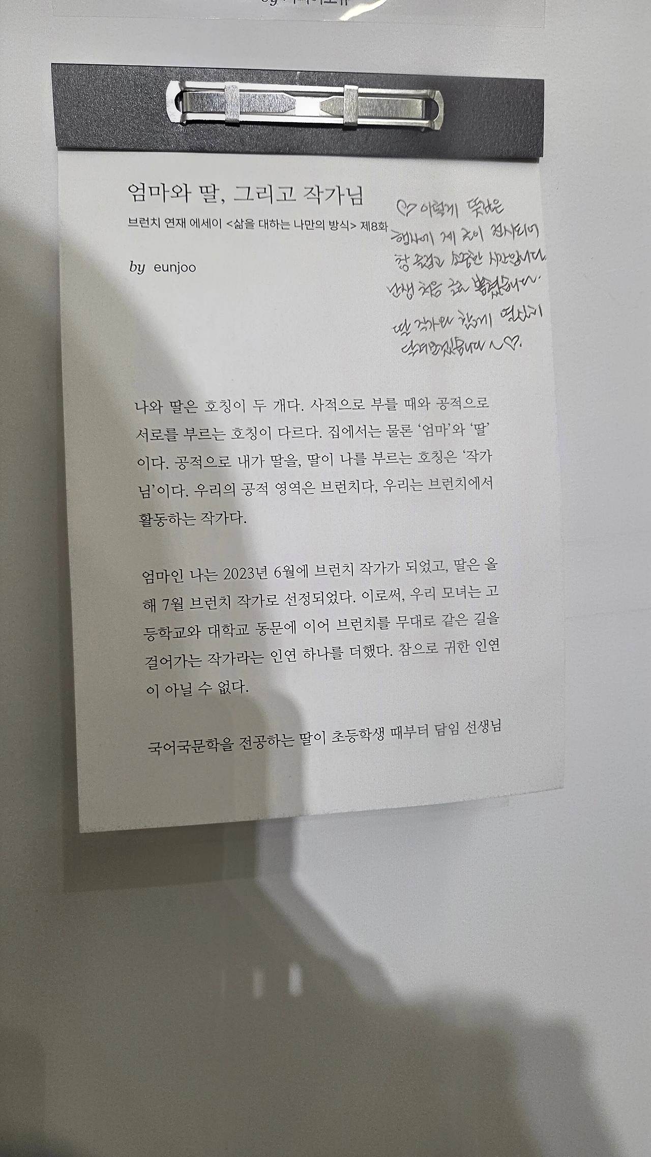 저희 엄마가 초대장을 받으셨어요~ 엄마가 무척 행복해하셔서 참 기뻤습니다. 브런치 팀에 감사드려요^^ 엄마 작가님 모시고 잘 보조해서 구경했습니다 ㅎㅎ