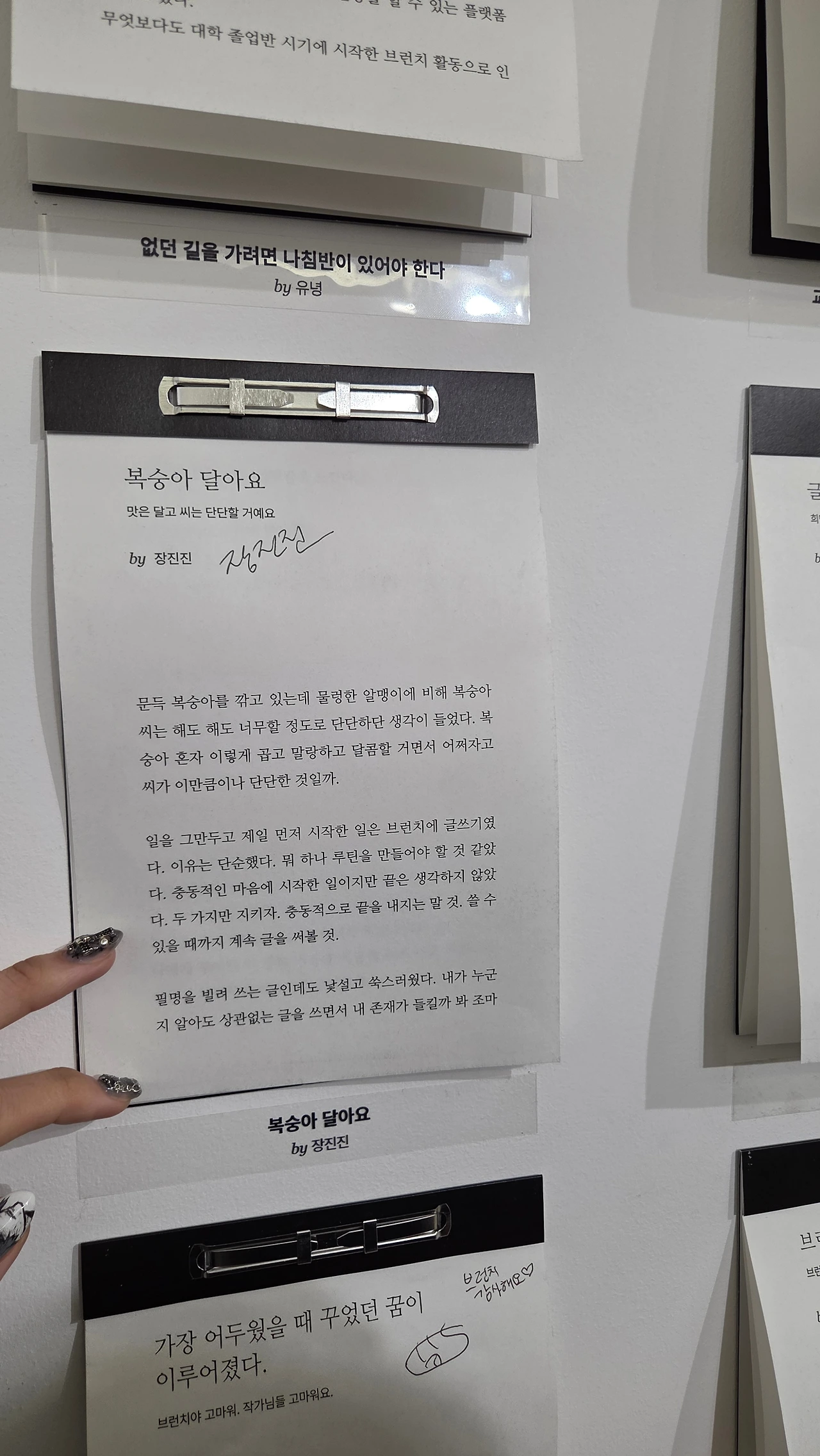 안 왔다면 후회했을만큼 작은 요소까지 정말 많이 준비하신 게 관람하는 내내 느껴졌어요. 얼마나 신경 써 준비해주셨을지요. 말그래도 활자를 온 몸으로 느낄 수 있는 공간이었어요. 직원 분들 무척 친절하게 안내해주셔서 더욱 기쁘게 다녀왔네요. 한 번 들러보셔요 ^^ 좋은 추억이 되었습니다.
