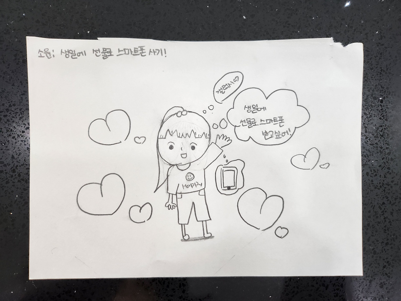 생일에 스마트폰을 받고 싶다는 그림을 그려 책상 위에 올려놓는다던지