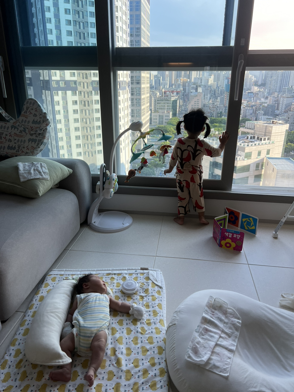 다음날, 주말에 처음으로 둘째와 단 둘이 있게 되었다. '나는 산후 도우미다.' 생각하고 미션을 하나하나 클리어해보았다. 배고플 때 먹이고, 심심할 때 놀아주고, 잠올 때 재우고, 집안일이 있으면 짬짬히 집안일을 해나갔다. 이전보다 훨씬 육아난이도가 쉬워졌다. 울음에 전혀 동요되지 않았다면 거짓말이겠지만, 출산 후 알 수 없는 호르몬 작용으로 감정이 오락가락 할 때 산후 도우미에 빙의하는 방법, 괜찮네.