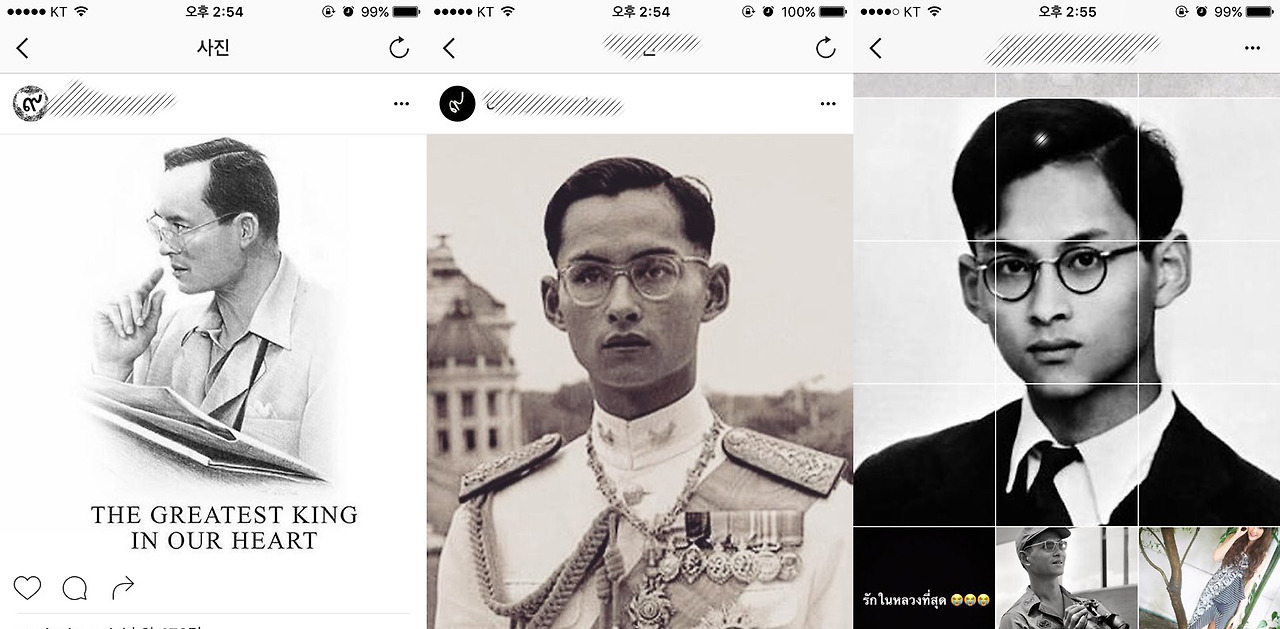 그의 서거를 애도하기 위해 7천만 명 가까이 되는 한 나라의 국민들은 검은 옷을 입으며, 개인의 SNS는 온통 흑백사진으로 색깔을 잃었고, 본인들의 프로필에는 "๙[까오=9]" (숫자 ‘9’는 서거한 국왕이 짜끄리 왕조의 라마 9세이다.)가 써져 있다.