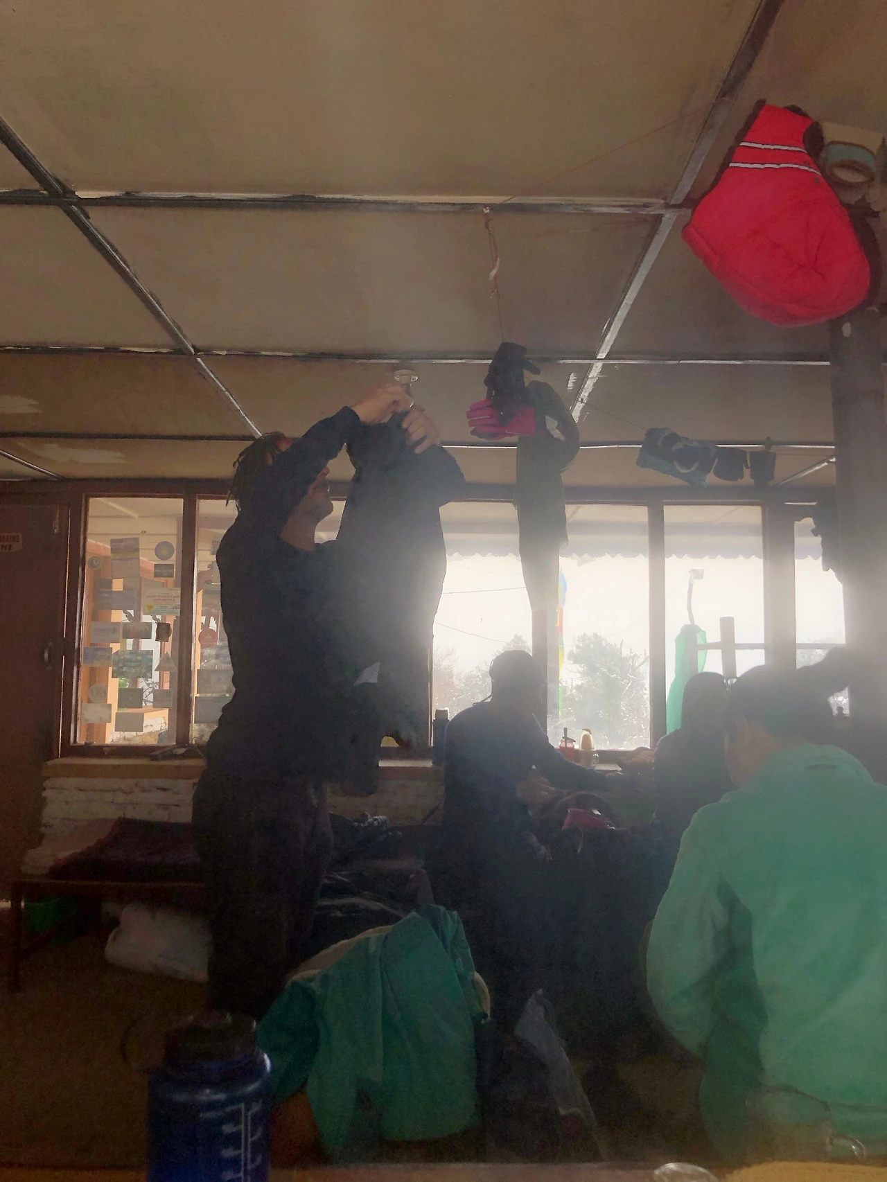 롯지 가운데에 있는 난로 주변에는 온갖 옷, 장갑, 모자가 널려있었다. 먼저 와서 옷 정리가 끝난 제이슨은 아일랜드에서 공수해온 꾸깃꾸깃한 홍차 박스에서 티백을 꺼내서 나눠줬고 난로 위에 있던 주전자를 가져와서 따뜻한 물까지 부어줬다. 보통 산 위에서 뜨거운 물은 돈을 내고 마셔야 하는데, 제이슨은 이상하고 비싼 패키지로 와서 주전자를 마음대로 쓸 수 있었다. 제이슨은 산 위의 재력가였다.