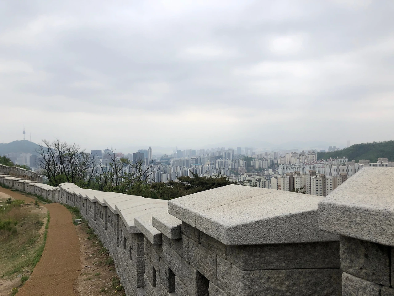 이런 계단은 어떻게 만들어지는 건지 볼 때마다 신기하다. 산 전체가 화강암이어서 그런지 위로 올라갈수록 흙보단 돌이 많아졌다. 도성을 계속 따라가다 보니 금방 정상(338m)에 도착했다.