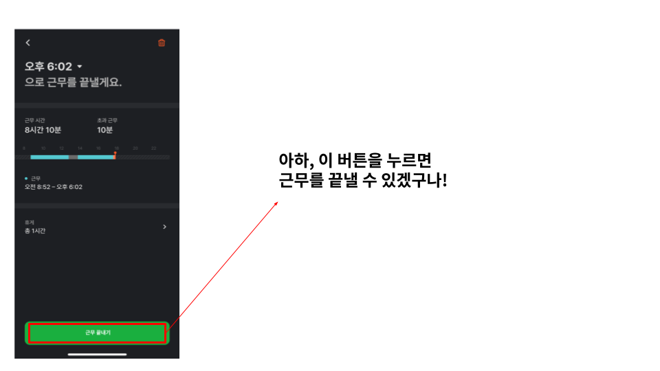 "아니, 알겠고 그래서 퇴근은 어떻게 하는데?"