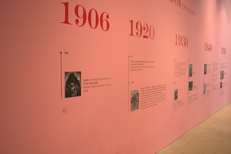 전시장은 눈이 부실 정도로 밝은 분홍과 빨간색으로 칠해져 있다. 전시장에서는 흔하게 보지는 못하는 컬러들이다. 덕분에 밝은 벽과 대비되는 흑백의 사진들이 훨씬 눈에 잘 들어왔다.