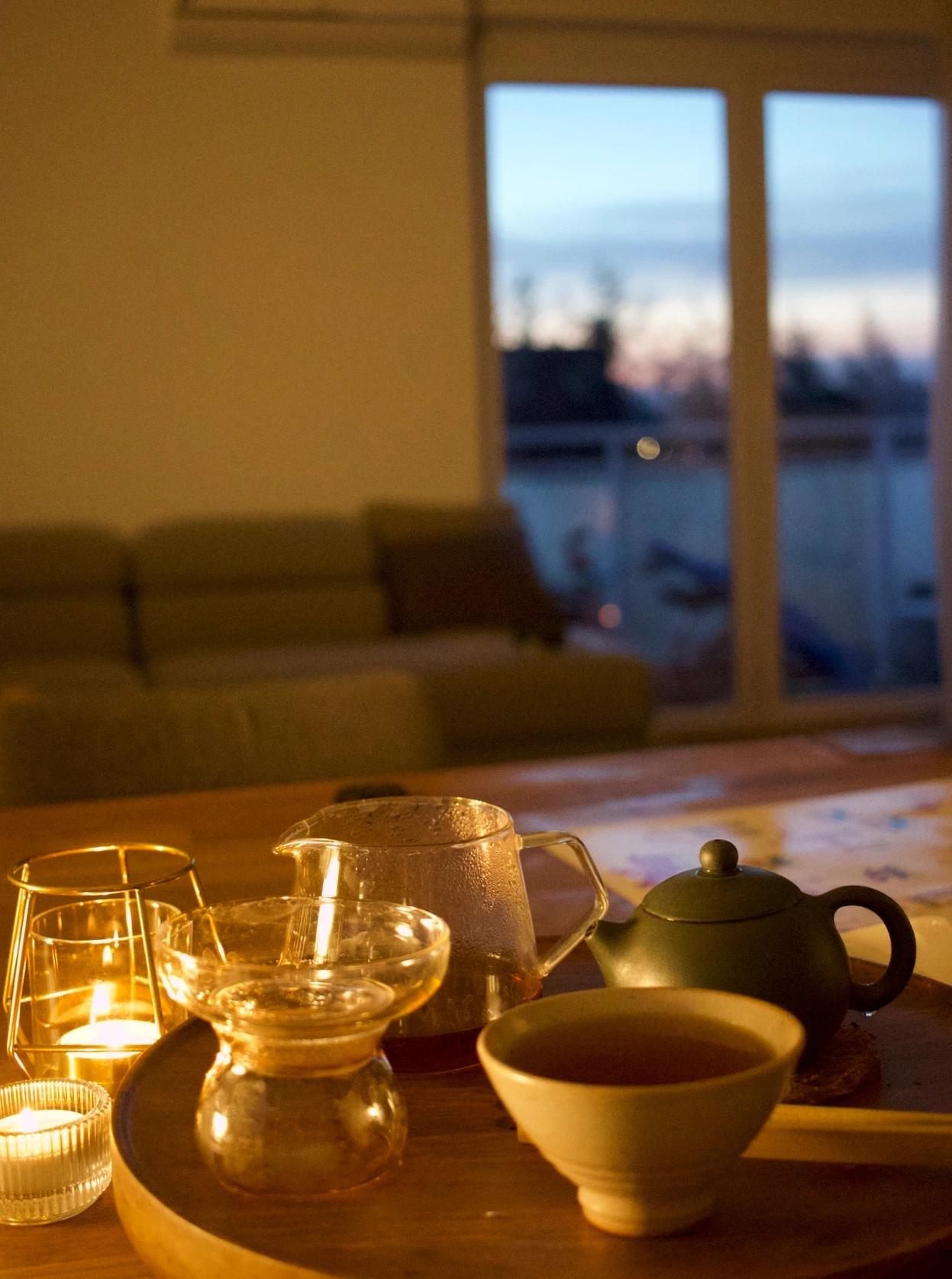 해뜨기 전의 어두컴컴한 주방에서 주섬주섬 초를 켠다.