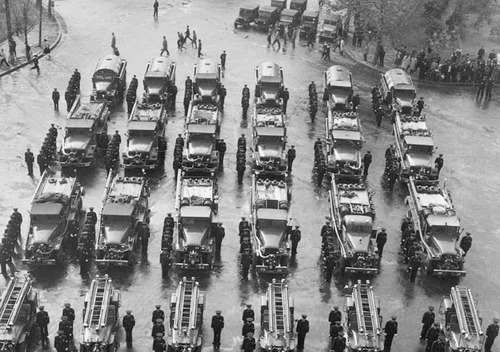 1930년대에 이르면 자동차펌프를 앞세운 출동, 수관 전개, 사다리 진입, 파괴반의 강제 개방 같은 분업 장면이 사진 기록과 연혁 자료에 자주 등장하는데요. 이 시기부터 내연기관 기반의 출동이 본격화된 덕분입니다.