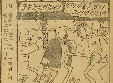 해석: 순사에게 방화자 지목을 하는 쫄쫄이