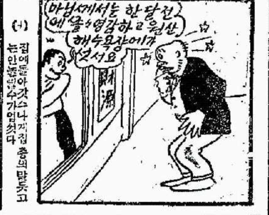 하녀 : 마님께서는 한 달 전에 쫄쫄이 영감님하고 원산 해수욕장에 가셨어요.