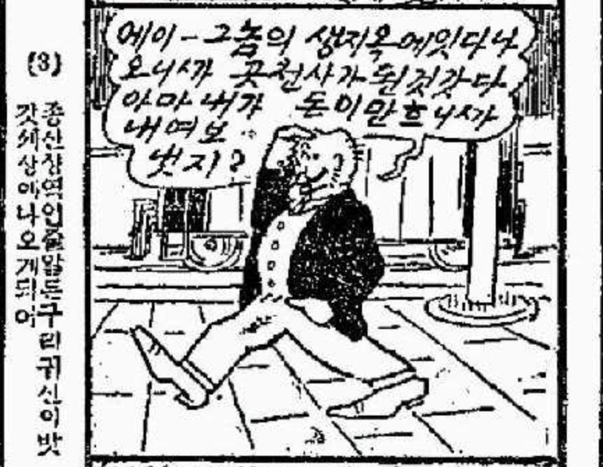 구리귀신 : 에이- 그놈의 생지옥에 있다 나오니까 곧(금방) 천사(천국에 온 기분)가 된 것 같다. 아마 내가 돈이 많으니까 내보냈겠지?
