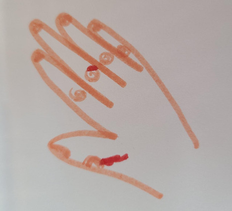 같은 날, 아이의 침대를 정리하는데 갑자기 손에서 불꽃이 튀는 것 같은 느낌이 났다. 뭐지? 손을 살피니 마디 접히는 부분이 갈라져 피가 나고 있었다. 피가 철철 흐르는 것도 아니고, 대수롭지 않게 여기며 계속 할 일을 하고 있는데 또 다른 곳에서 불꽃이 튀었다.