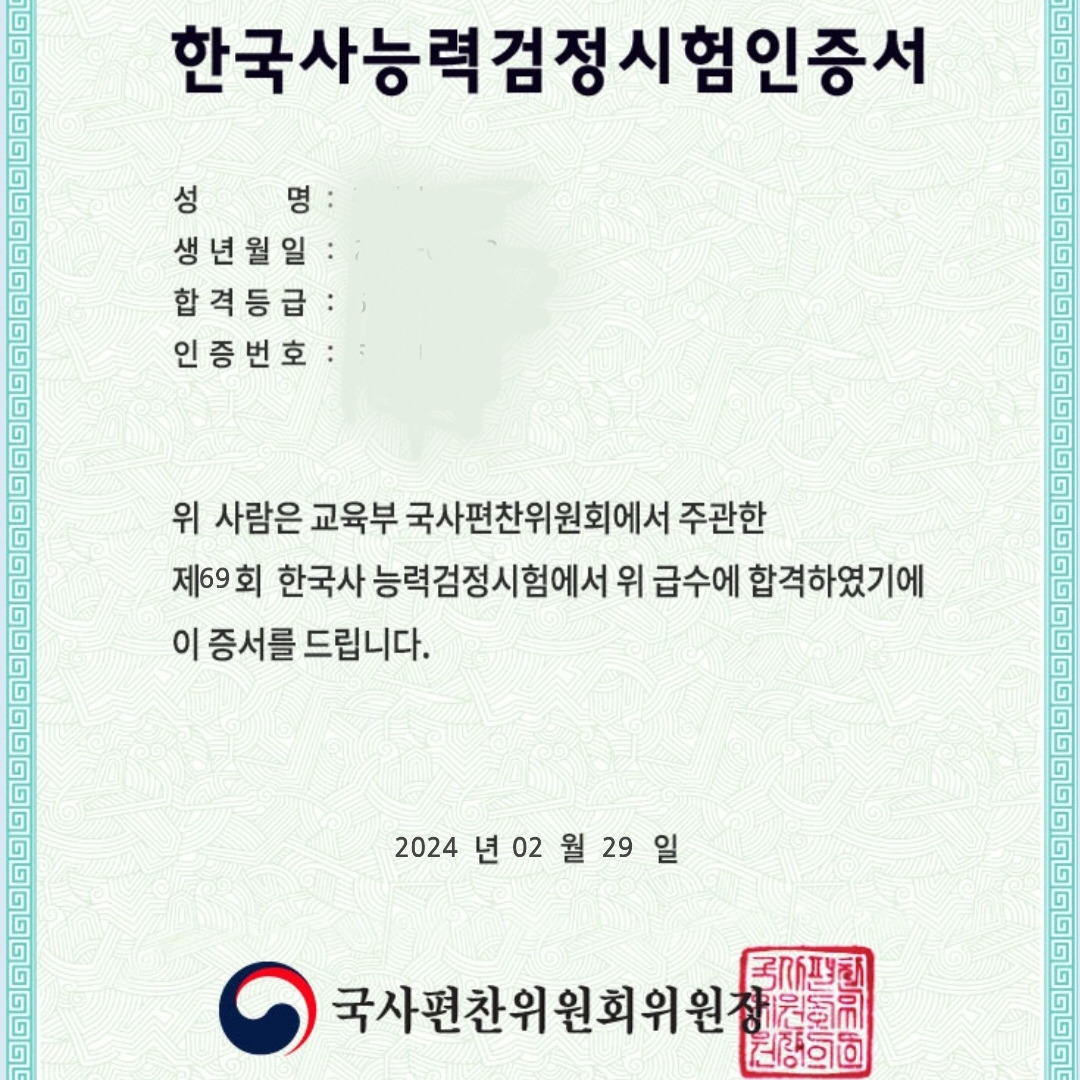 다만, 언제든 꿈을 찾는다면 노력 끝에 얻어낸 한국사 급수 인증서처럼 그것을 향해 나아가는 길이 순탄치 않더라도 즐겁게 영위하고 노력하면 할 수 있다는 마음만은 기억하길, 엄마로서 바랄 뿐이다.