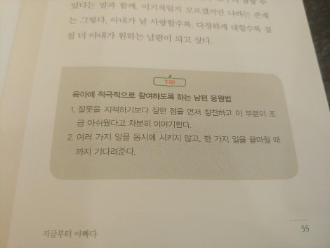 특별히 이 책은 육아를 도맡아 하는 아빠의 이야기인 덕분에 남편의 입장을 이해하지 못하겠다는 아내들이 읽어봐도 좋을 듯 싶다.
