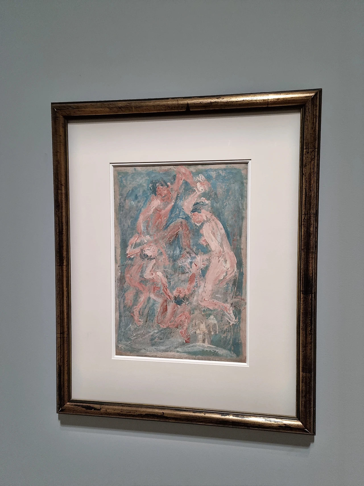 이중섭의 <춤추는 가족> 그림 앞에서는 그의 애틋한 그리움이 느껴져 나도 모르게 울컥했다. 가까이서 보면 형태가 또렷하지 않은 그림이지만 멀리서 보거나 사진을 찍어서 보면 형태가 보이는 신기한 그림이기도 했다. 아내와 두 아이들과 함께 '둥글게 둥글게'를 하며 웃고 있는 듯한데 아이들의 깔깔대는 웃음소리가 들리는 듯했다. 그림 속에 얼핏 보이는 그의 얼굴이 작가의 실제 웃는 표정과 비슷해 보여 신기했다. 아내와 자식들을 다시 만나 춤추며 함께 웃고 싶은 그의 간절한 마음이 느껴졌다. 그림이 그려진 시기는 1955년 그의 사망연도는 1956년. 나는 혼자만 그의 미래를 알고 있는 것 같아 미안할 지경이었다. 이러한 간절한 그리움을 그는 어떻게 달랠 수 있었을까.
