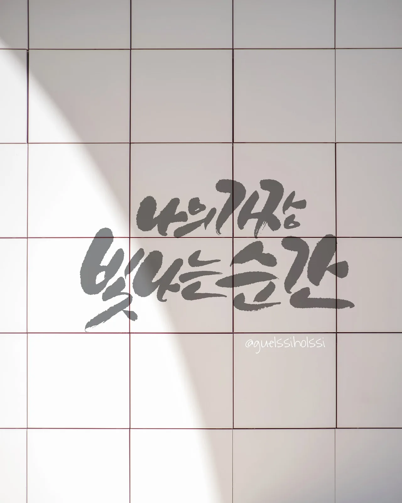 빛은 누구에게나 주어진다. 하지만, 오래 밝히고 그 빛을 누군가에게 비추기 위해서는 또 다른 노력이 필요하다. 온전한 나의 밝힘이 오래 지속될 때 그 빛은 더욱 커지고 빛이 부족한 다른 이에게 전해 지리라는 막연하면서도 확신한 나의 믿음이 있다. 나는 그 빛이 밝혀질 날을 기다리고 있는 작은 별, 하지만 지금 이 순간이 내가 밝히고 있는 가장 빛나는 순간임을 나는 안다.