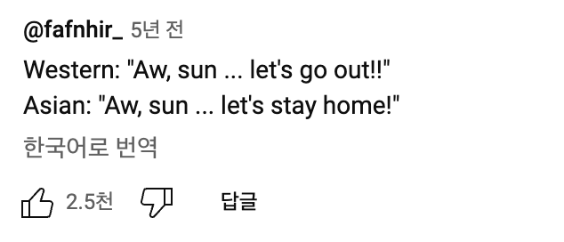 태닝에 대한 동서양의 문화차이를 다룬 흥미로운 유튜브 영상이 있습니다. <링크>