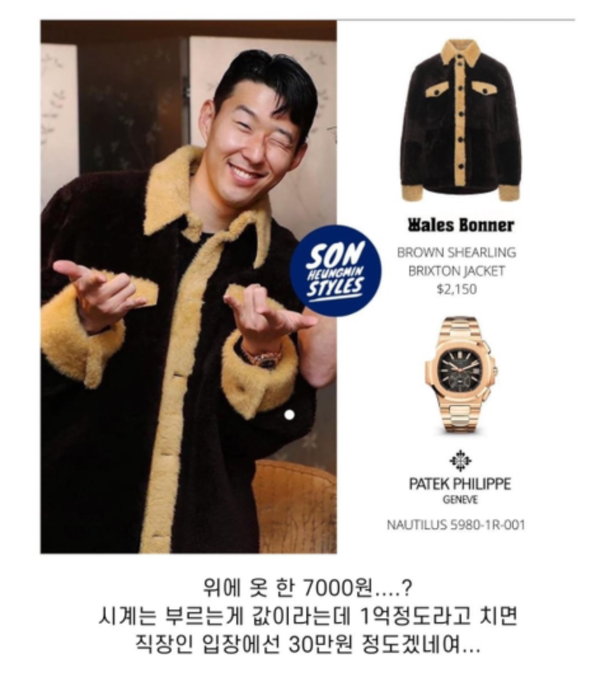주급이 약 3억 원 정도로 (월급 12억) 알려진 손흥민 선수의 옷, 액세서리, 월세 등을 월급 300만 원의 직장인으로 치환해서 계산한 글에서 시작했습니다.